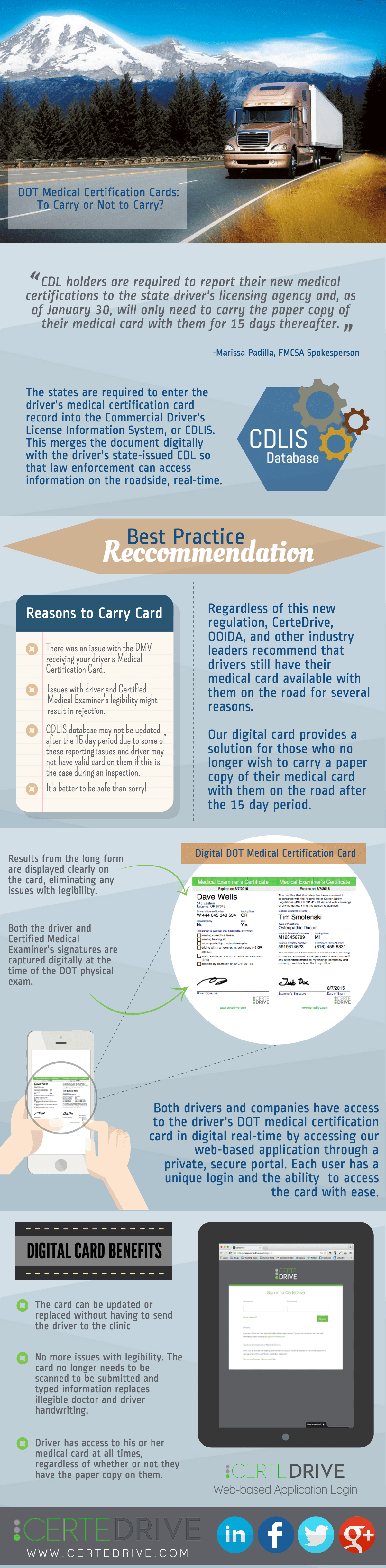 In order to comply with the requirements established by the united states federal motor carrier safety administration (fmcsa), the maryland motor vehicle administration (mva) includes a medical certification (med cert) status and the information contained on the medical examiner's certificate (dot card) on the driving.